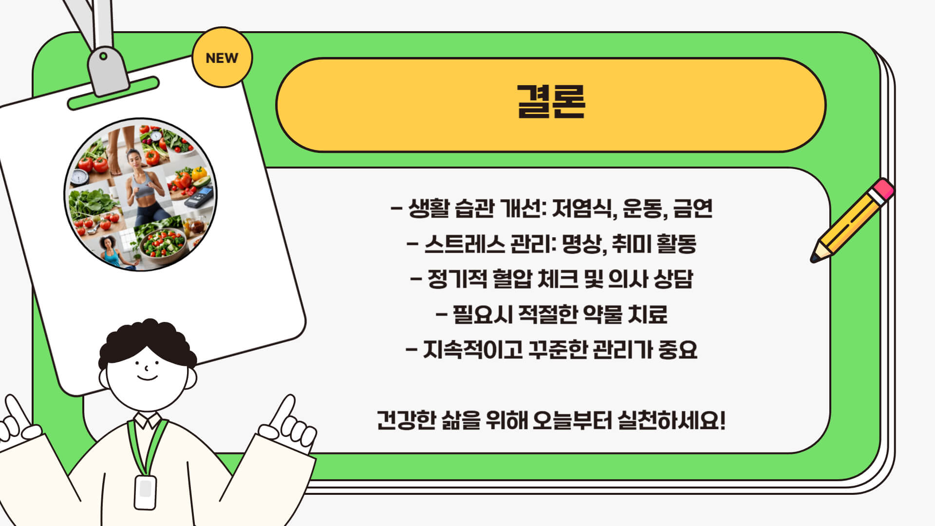 💡 결론: 혈압 관리는 단기간에 끝나는 것이 아니라 꾸준한 노력이 필요합니다.