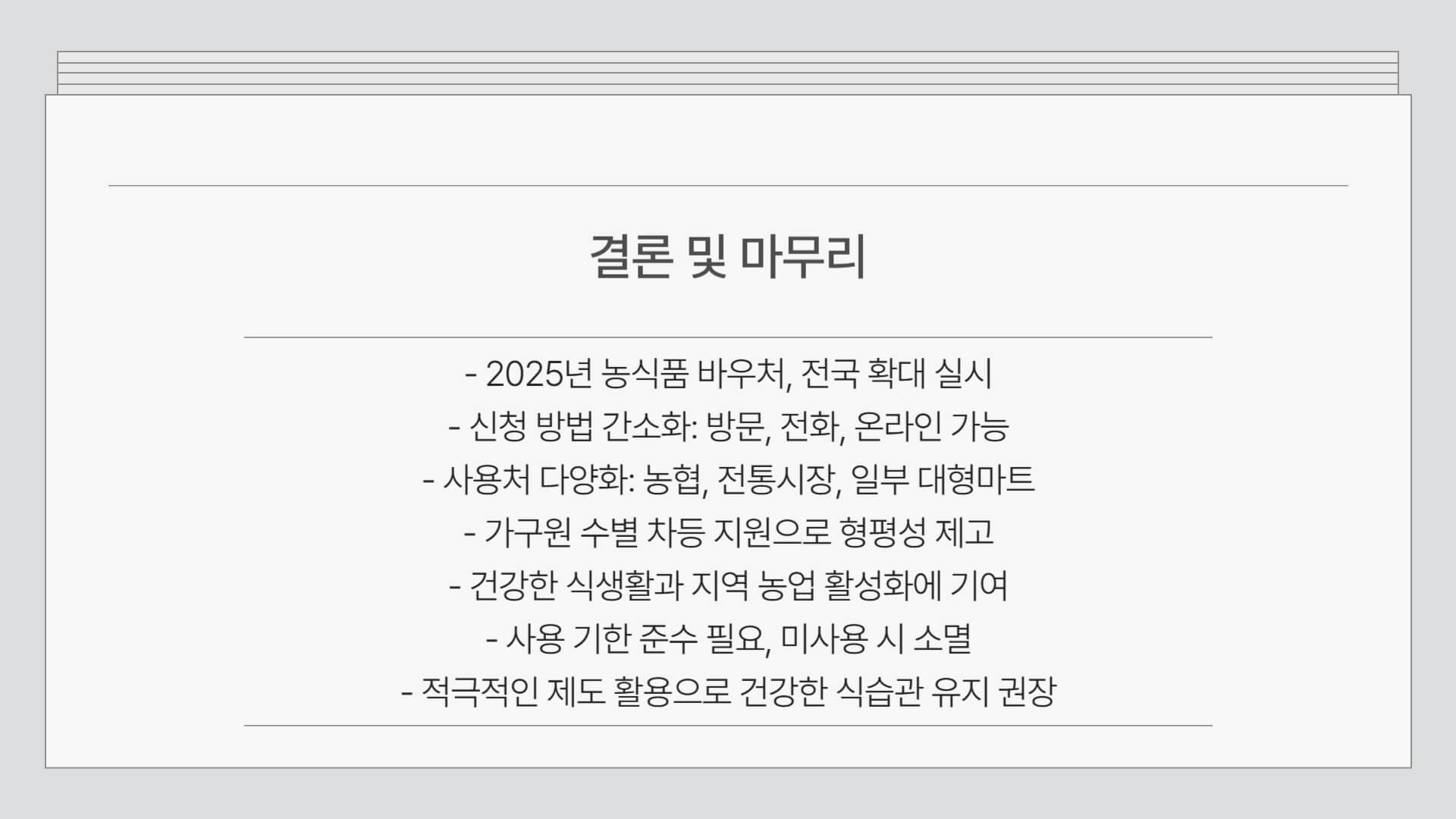 또한, 바우처 사용 기한을 놓치지 않도록 주의하고, 신선한 농산물을 적극 활용하여 건강한 식습관을 유지해 보세요! 😊