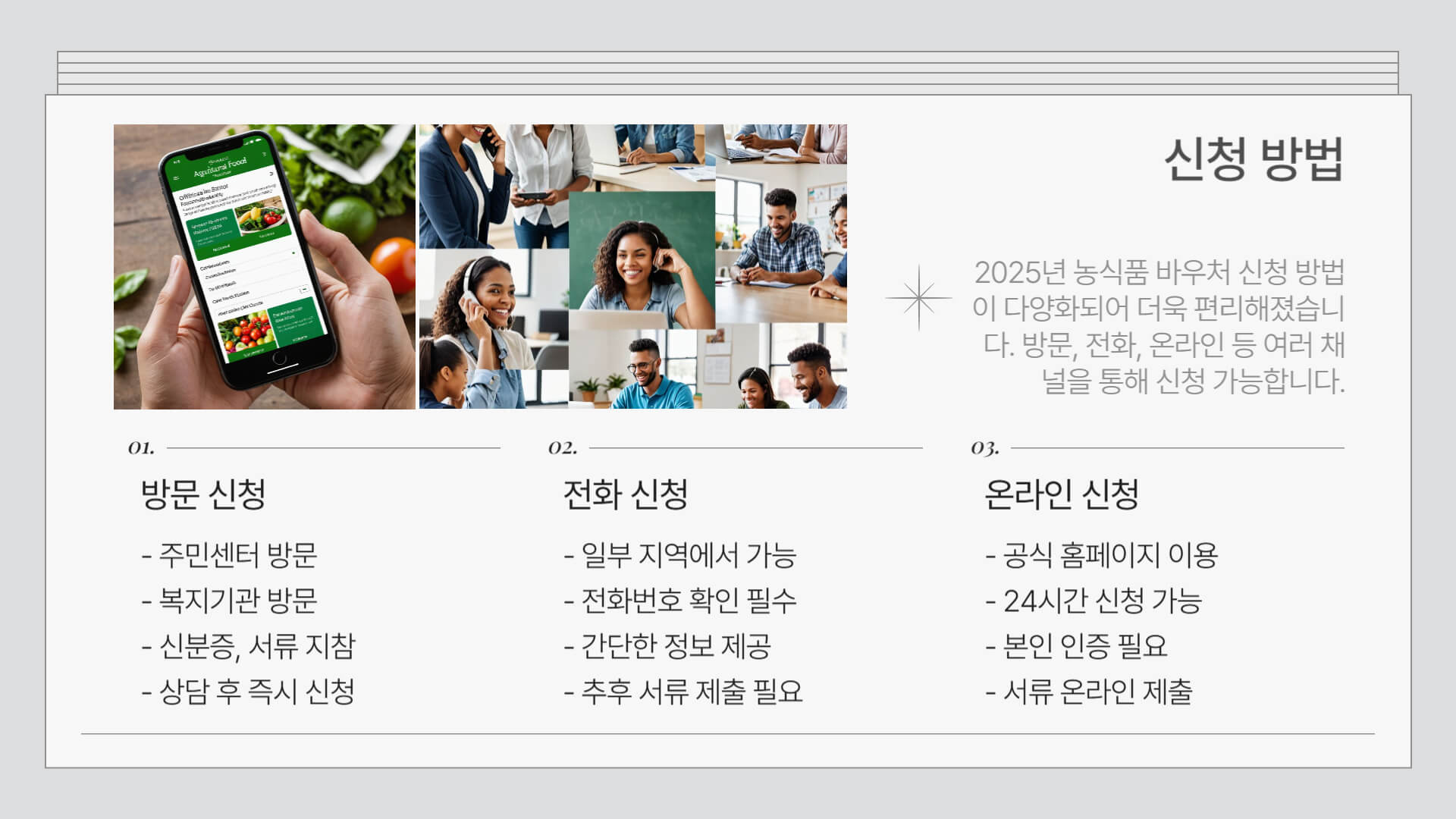신청 방법: 방문, 전화, 온라인